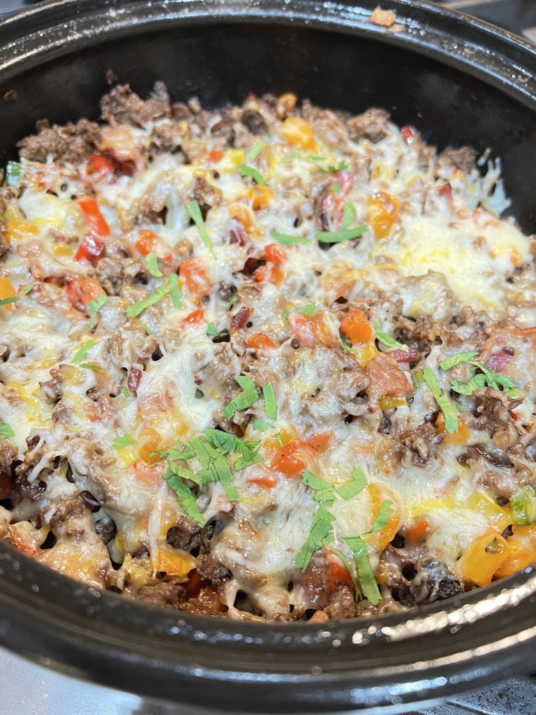 - Top with shredded Mexican-style cheese and cover for 5 minutes.