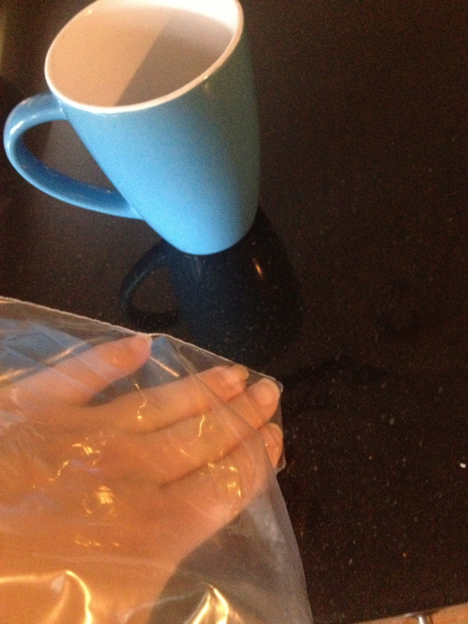 - Fold top of the bag over the sides of the cup. Pour the batter into the bag.