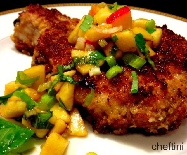 Breaded Panko Pork Chops with Peach Relish