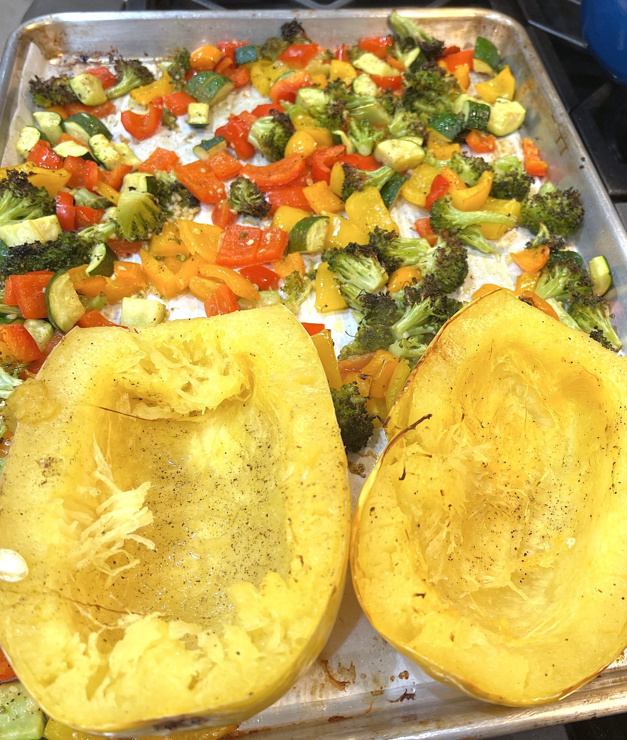 Sheet Pan Roasted Vegetable Spaghetti Squash