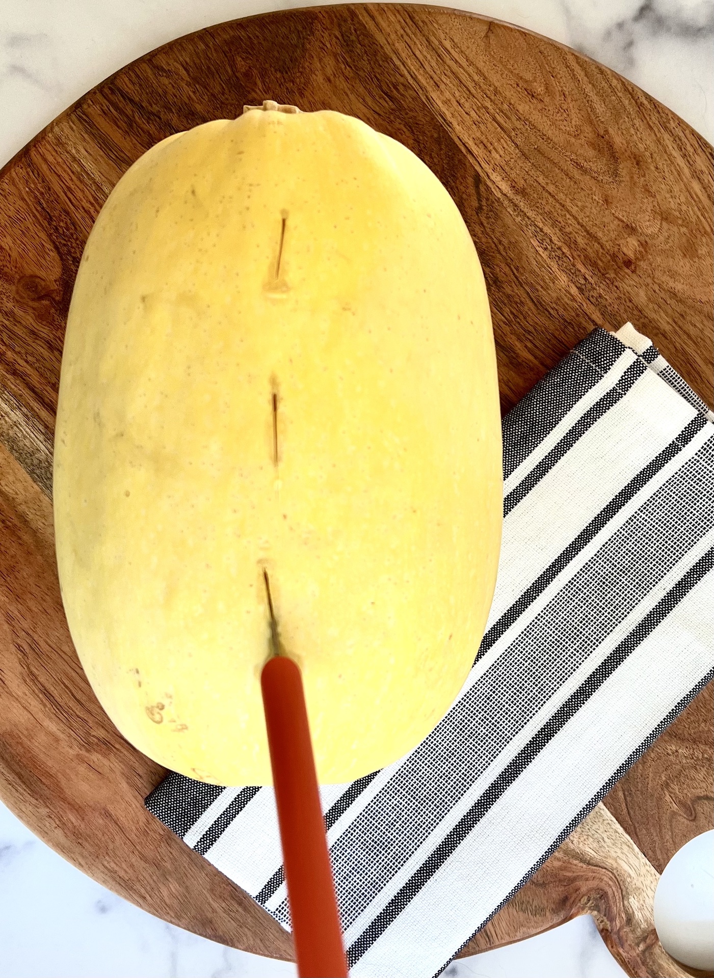 There are countless tips and tricks all over the internet for cutting harder skinned vegetables like, spaghetti squash.