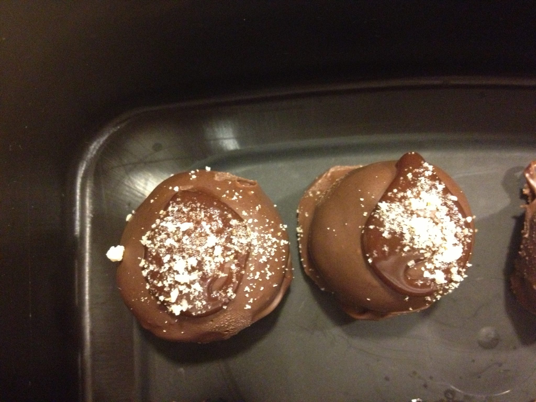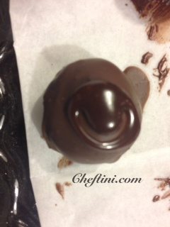 - Remove with a fork - tapping to remove excess chocolate. Transfer to baking sheet